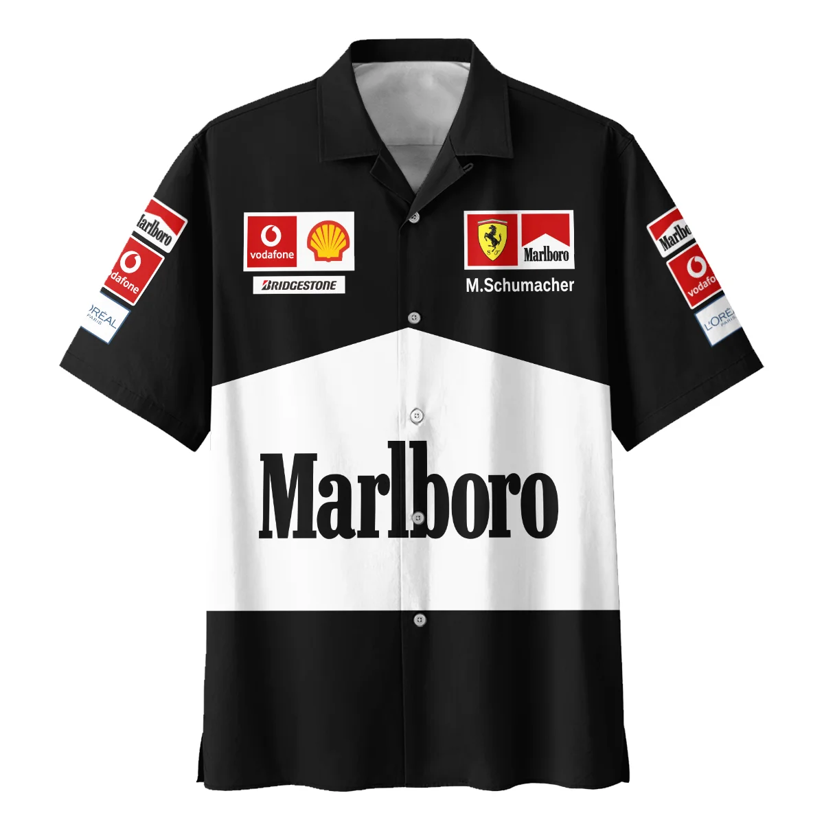 2004 Black Version Michael Schumacher Race Suit Ferrari F1 Hawaiian Shirt BLVAMC020925A11HW – Race Day Design