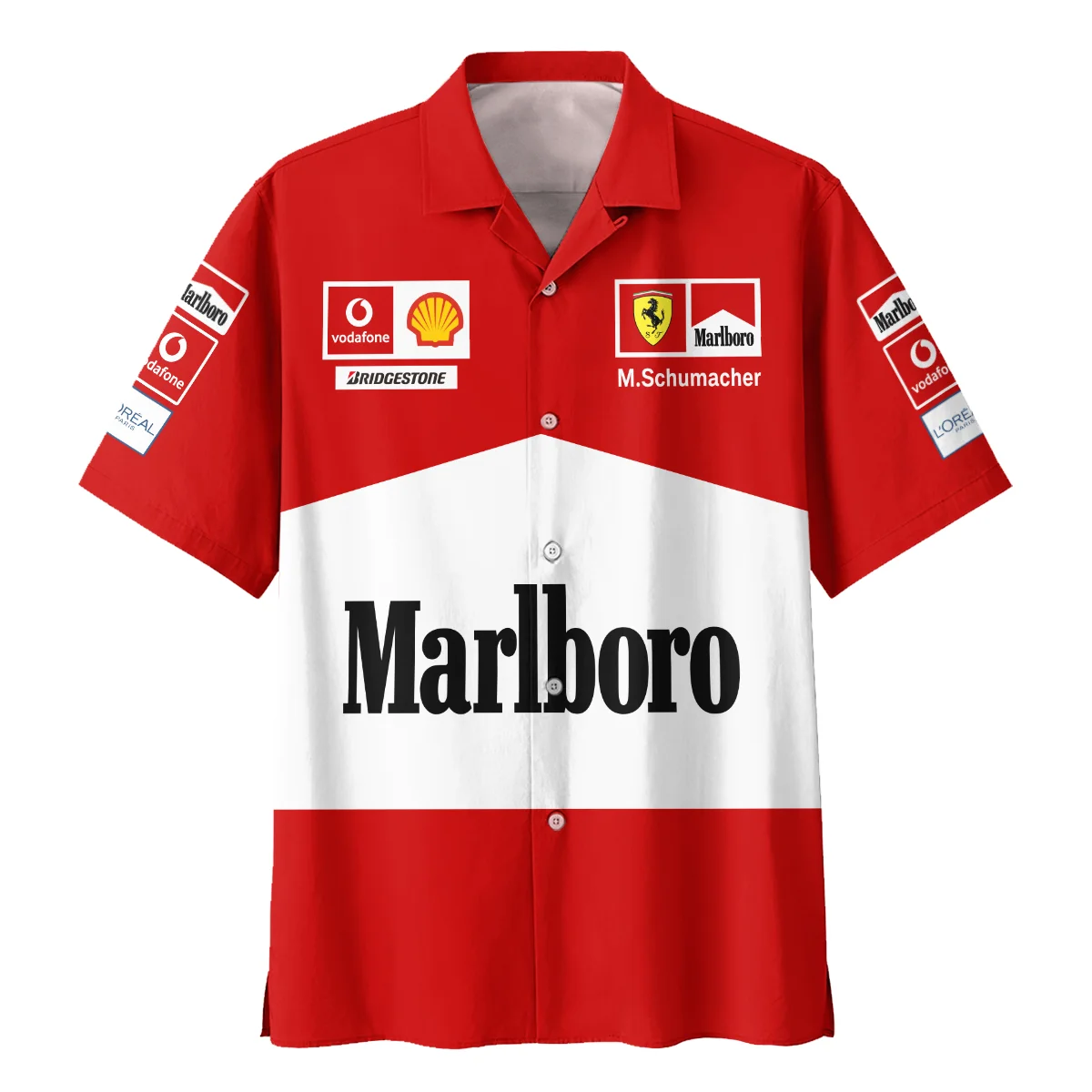 2004 WDC Michael Schumacher Race Suit Ferrari F1 Hawaiian Shirt BLVAMC020925A12HW – Racing Lifestyle Clothing