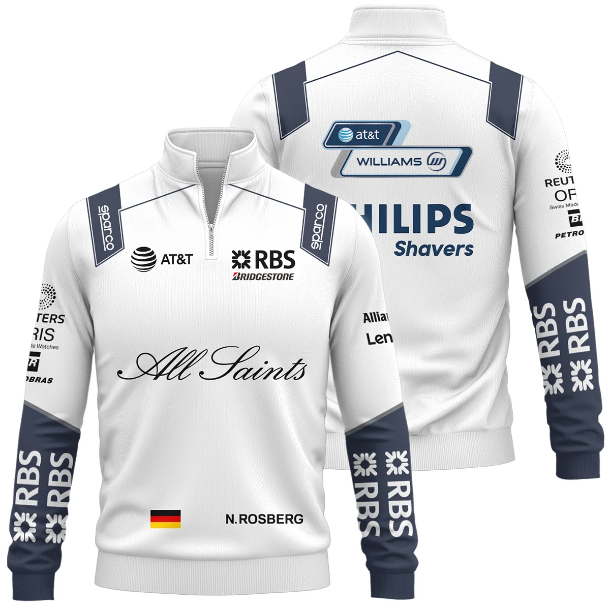 2016 WDC Nico Rosberg Racing Suit Mercedes F1 Quarter-Zip Sweatshirt BLVANR281125A1QZS