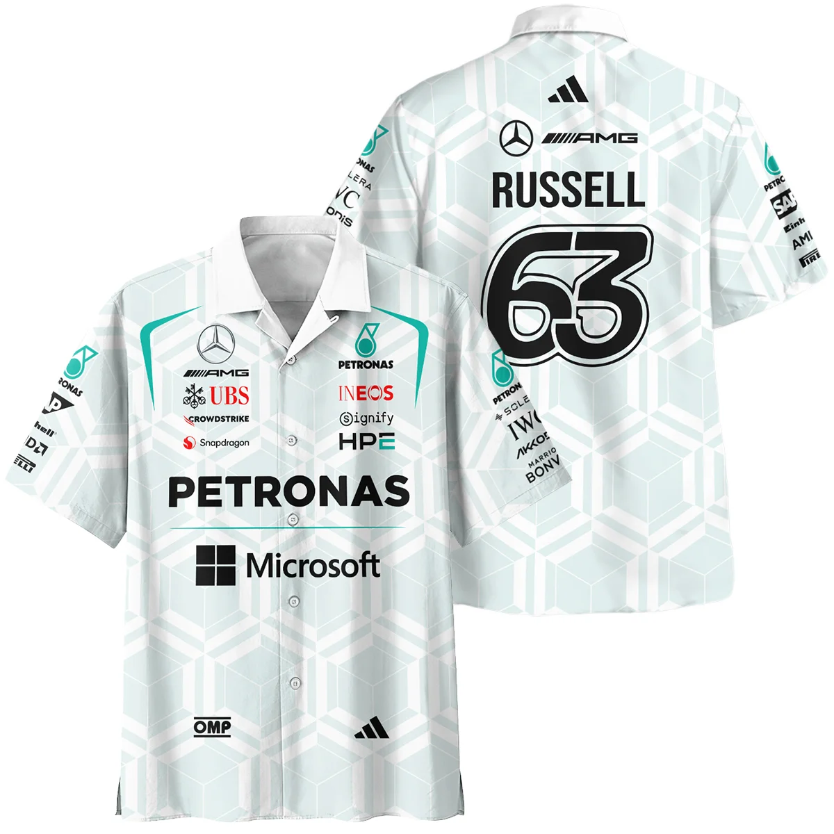 2026 George Russell Mercedes F1 Teamwear Hawaiian Shirt BLGR30326A2HW – White – Trackside Outfit
