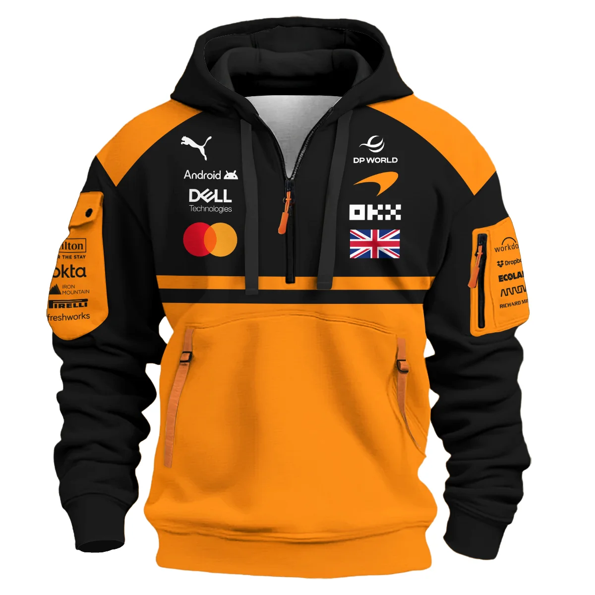 2026 Lando Norris McLaren F1 Teamwear Hoodie Half Zip BLNR26126A1HDF – Orange – Motorsport Apparel