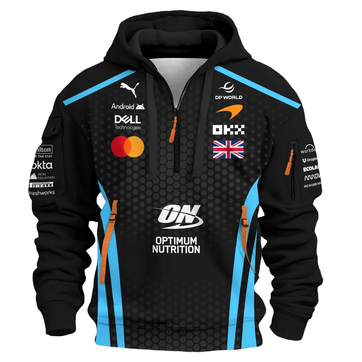 2026 Lando Norris McLaren F1 Teamwear Hoodie Half Zip BLNR26226A3HDF – Cyan – Formula Racing Apparel