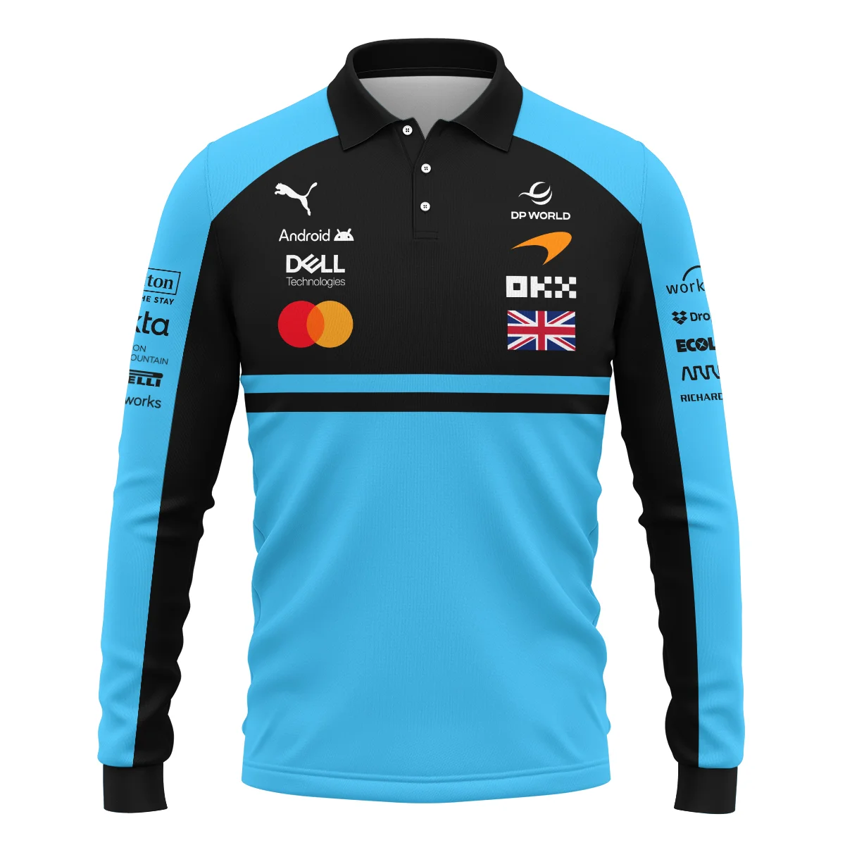 2026 Lando Norris McLaren F1 Teamwear Long Polo Shirt BLNR26126A3LPL – Cyan – Formula Racing Apparel