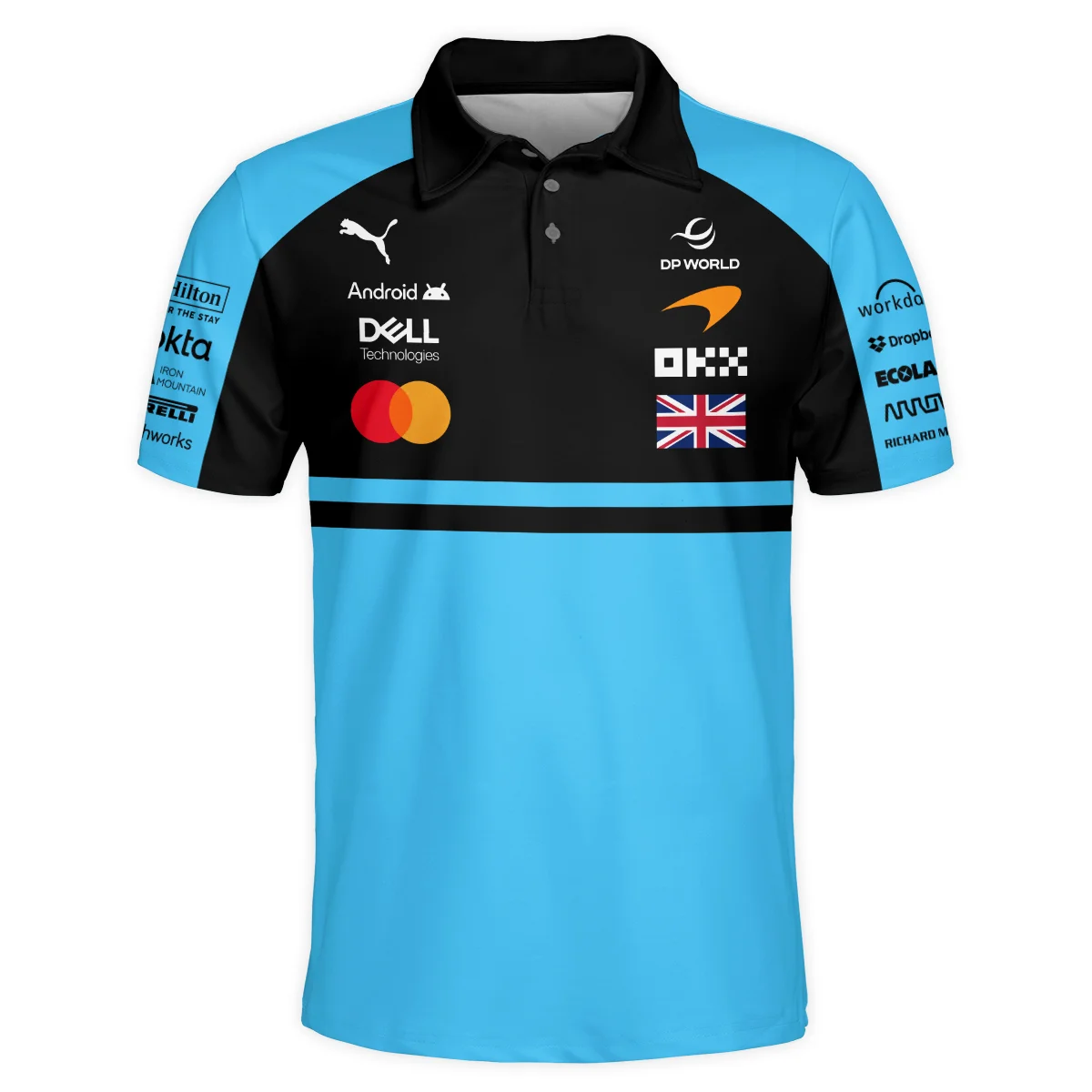 2026 Lando Norris McLaren F1 Teamwear Polo Shirt BLNR26126A3PL – Cyan – F1 Fan Gear
