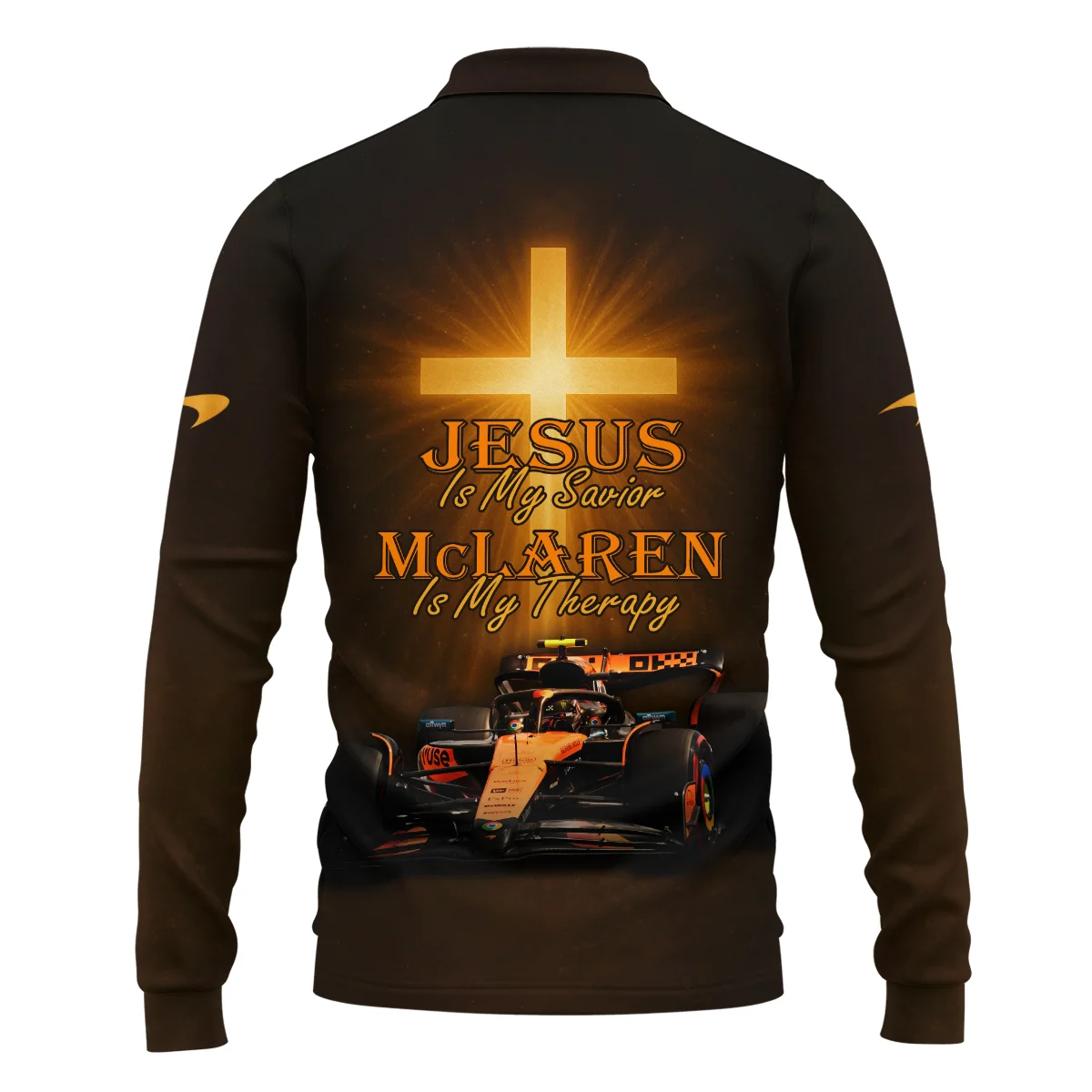 Jesus is my Savior McLaren is my Therapy – Long Polo Shirt BLMCL251025A1LPL – Motorsport Lifestyle Wear
