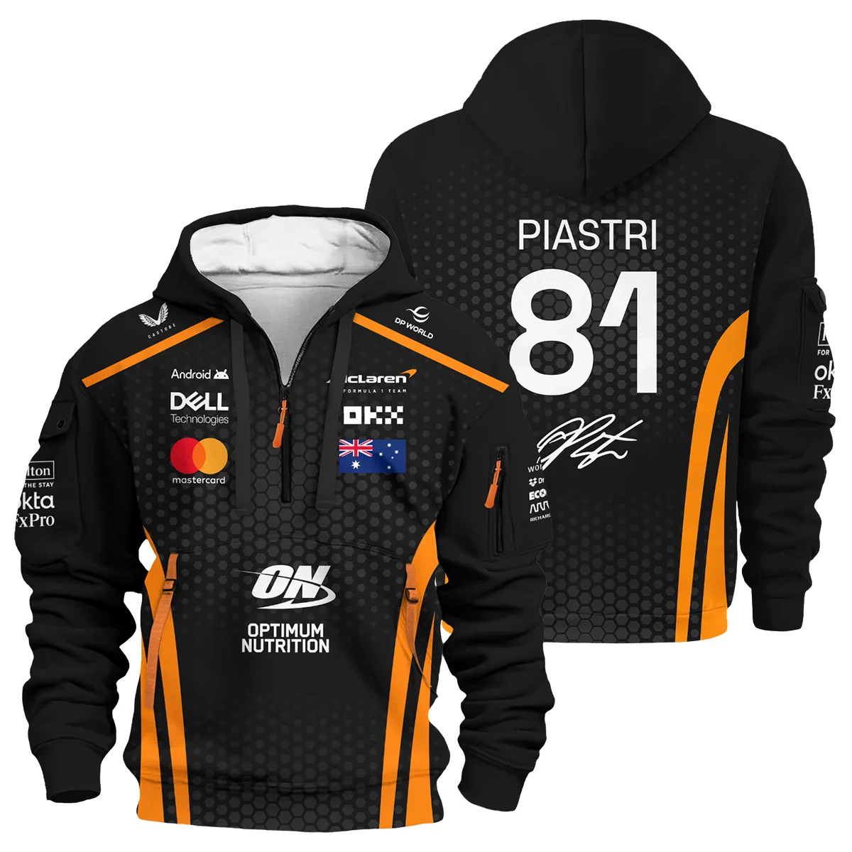 2026 Lando Norris 1 McLaren F1 Teamwear Hoodie Half Zip BLNR25326A1HDF – Orange
