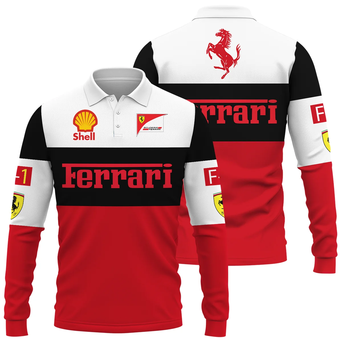 Scuderia Ferrari Racing F1 Long Polo Shirt All Over Prints BLF1R25325ALPL – Race Day Design