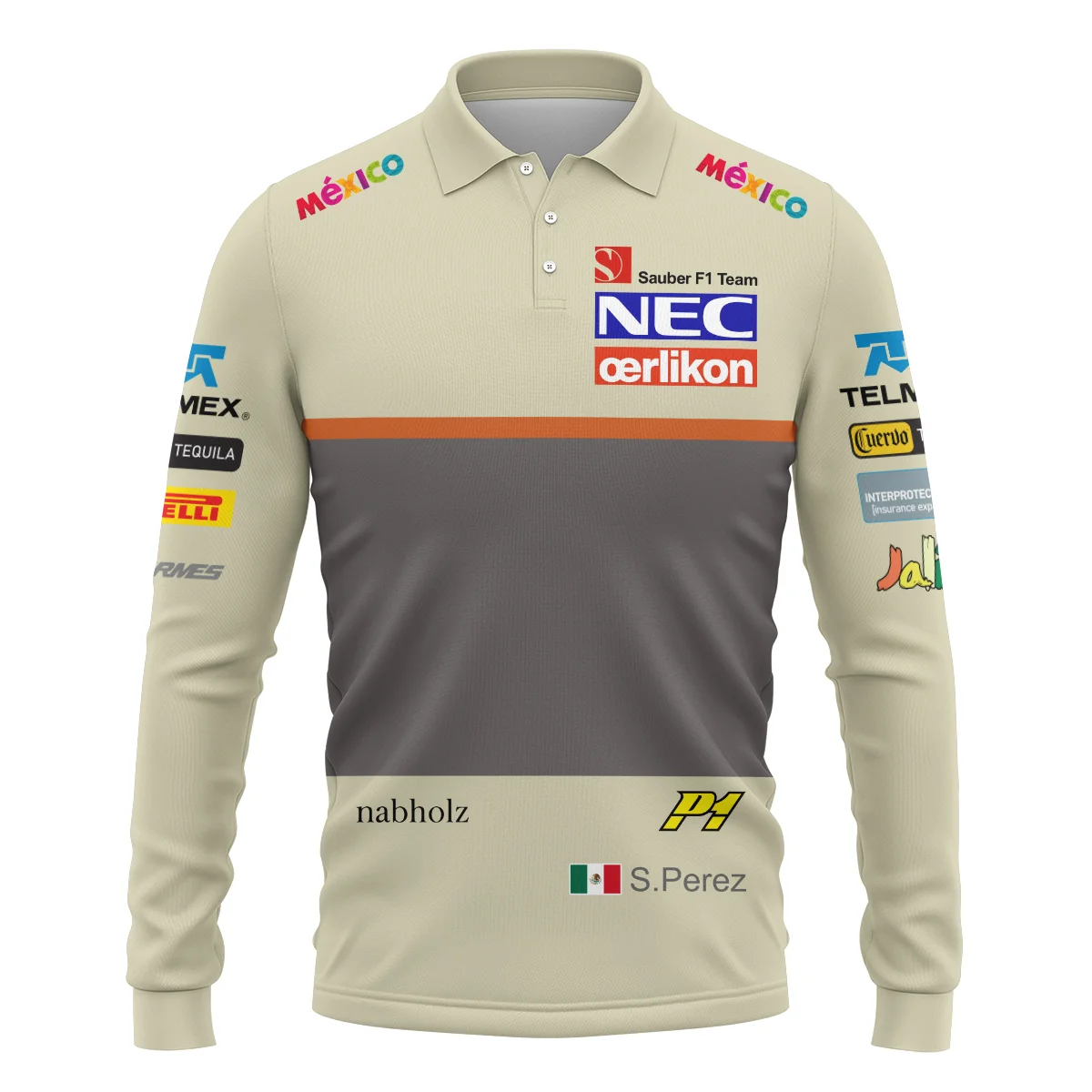 2012 Sergio Perez Racing Suit Sauber F1 Long Polo Shirt BLVASP170925A10LPL