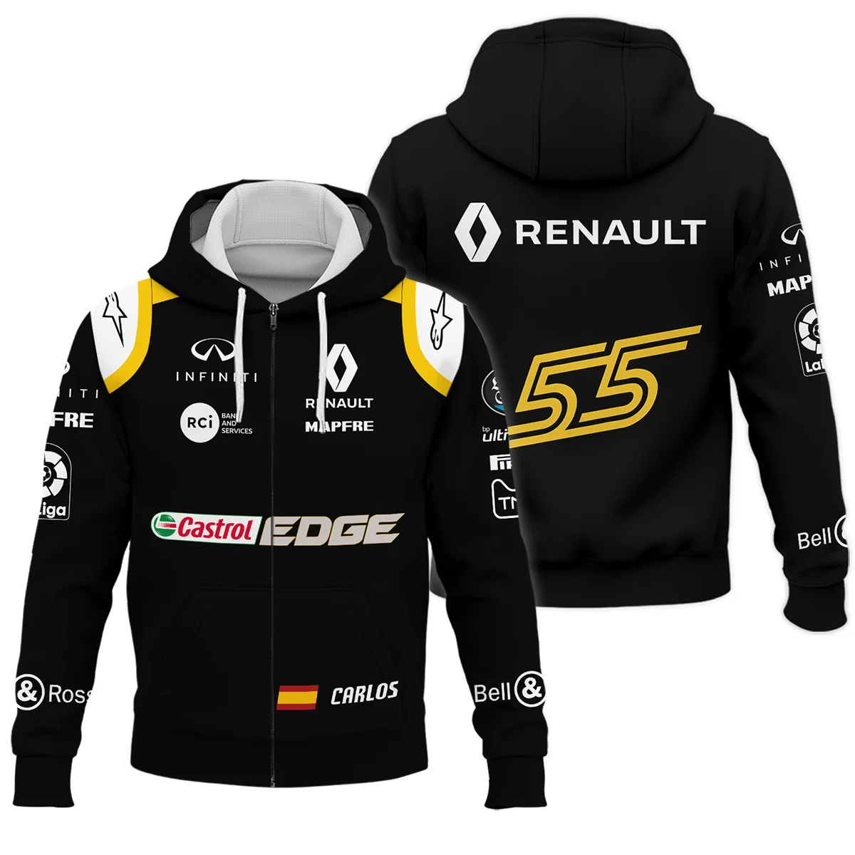 2018 Carlos Sainz Racing Suit Renault F1 Zipper Hoodie BLVACS190825A1ZHD