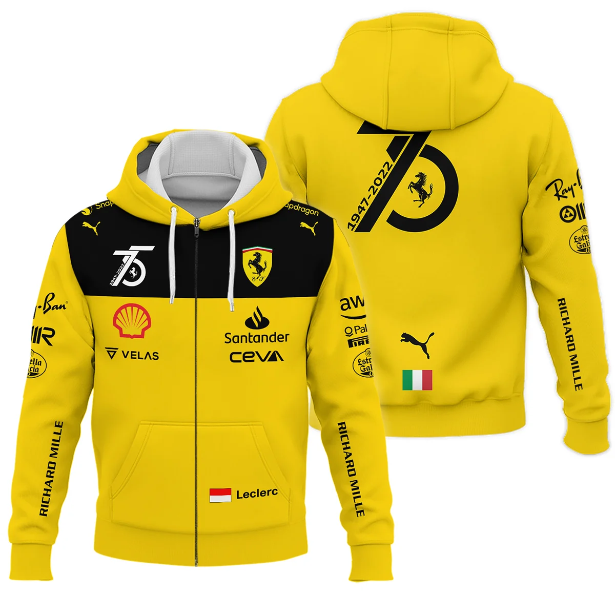 Be the first to review “2022 75th Anniversary Charles Leclerc Racing Suit Ferrari F1 Zipper Hoodie BLVACL190825A13ZHD”