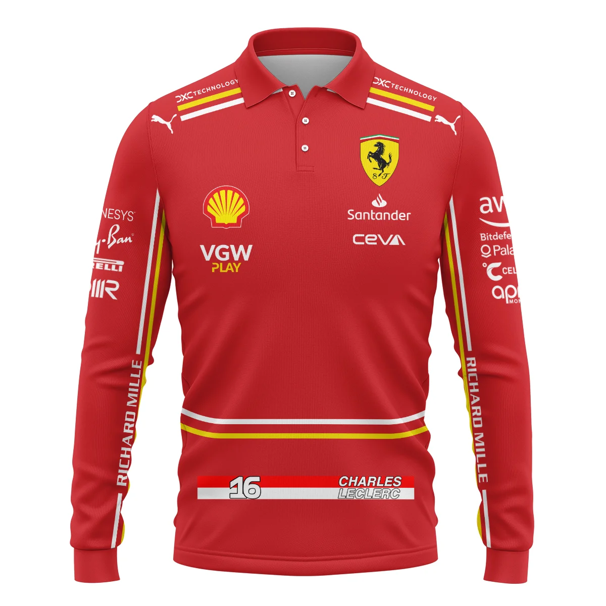 2024 Charles Leclerc Racing Suit Ferrari F1 Long Polo Shirt BLVACL260825A4LPL