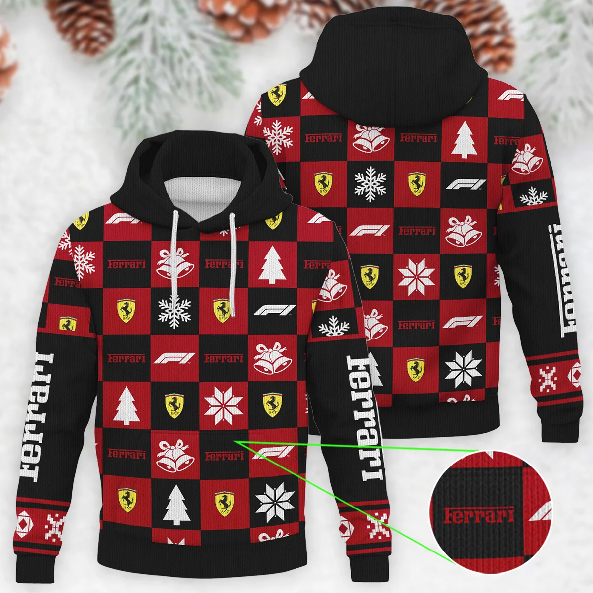 Square Pattern Ferrari Formula 1 – Knitted Hoodie BLVAF12209250A33FRR