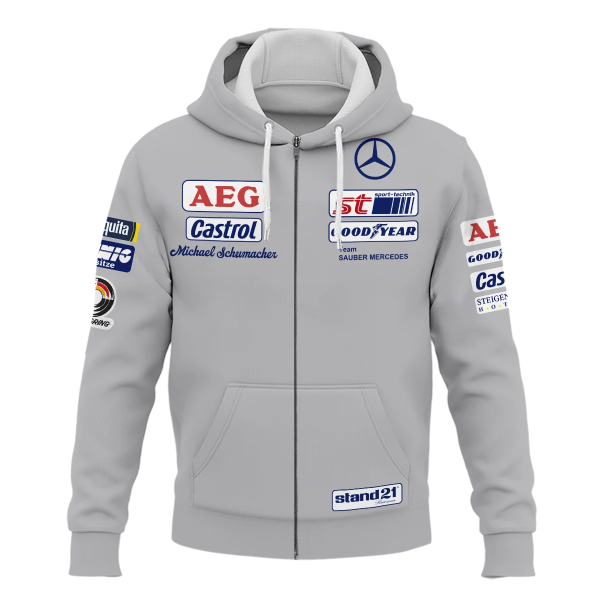1990 Michael Schumacher Race Suit Mercedes F1 Zipper Hoodie Unisex Motorsport Apparel BLVAMC020925A5ZHD