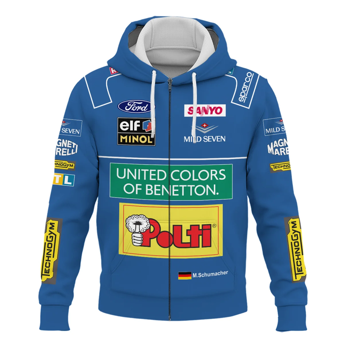 1995 WDC Michael Schumacher Race Suit Benetton F1 Zipper Hoodie BLVAMC020925A1ZHD