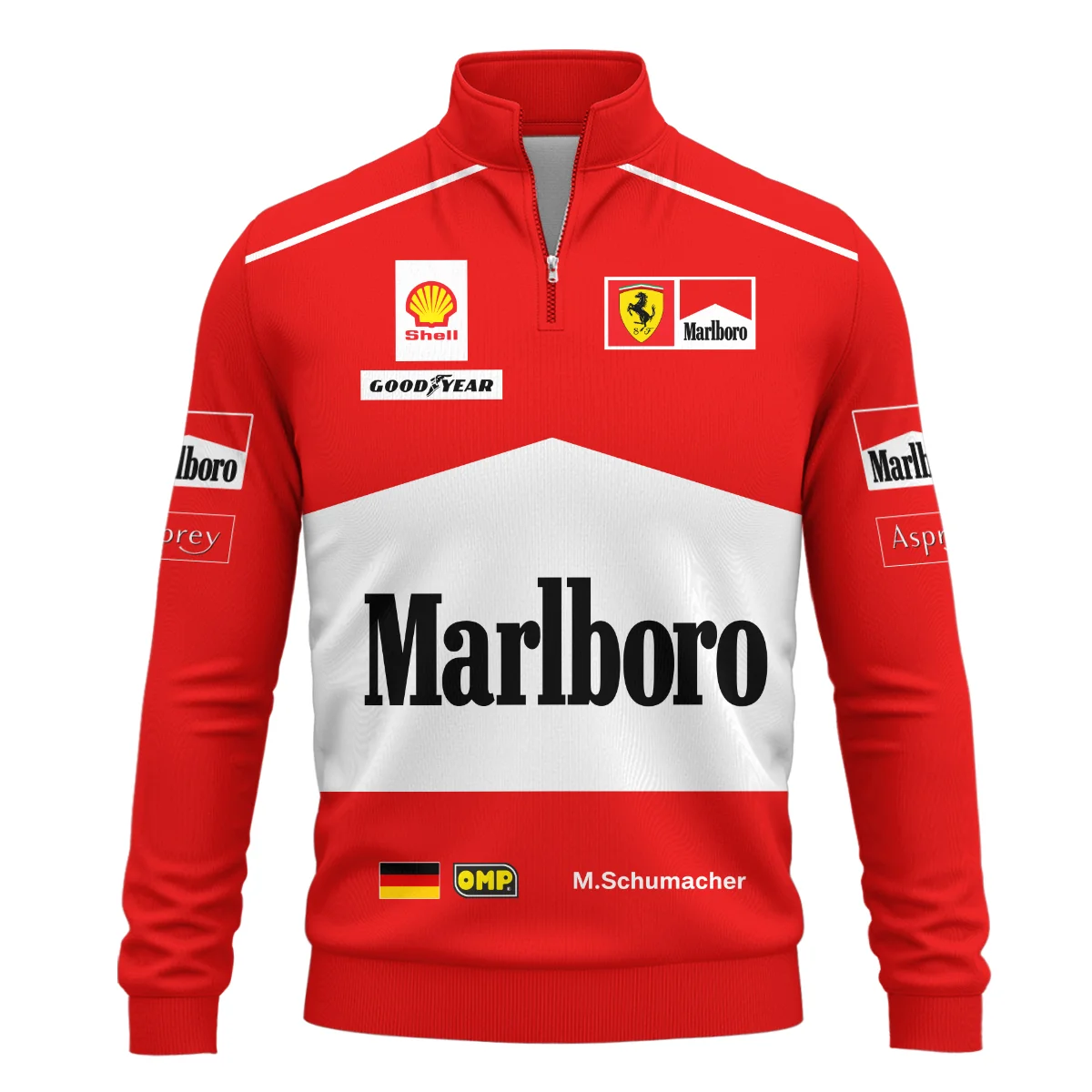 1997 Michael Schumacher Race Suit Ferrari F1 Quarter-Zip Sweatshirt Unisex Motorsport Apparel BLVAMC020925A7QZS
