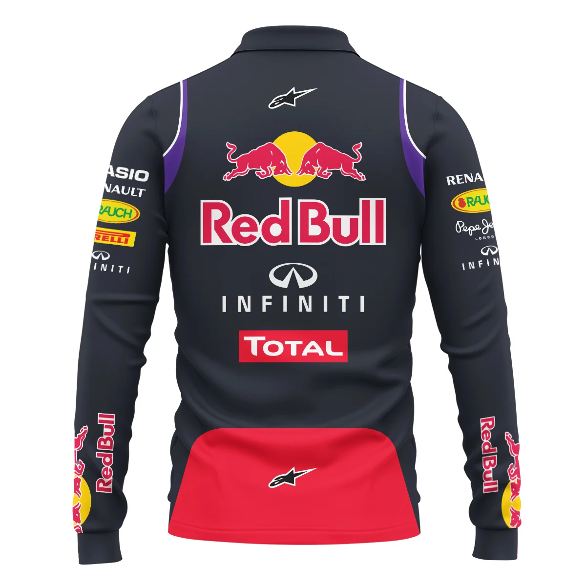 2014 Sebastian Vettel Racing Suit Red Bull Racing F1 Long Polo Shirt Unisex Motorsport Apparel BLVASV110925A3LPL