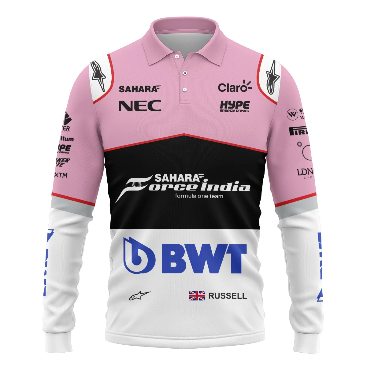 2017 George Russell Racing Suit Force India F1 Long Polo Shirt Unisex Motorsport Apparel BLVAGR080925A7LPL