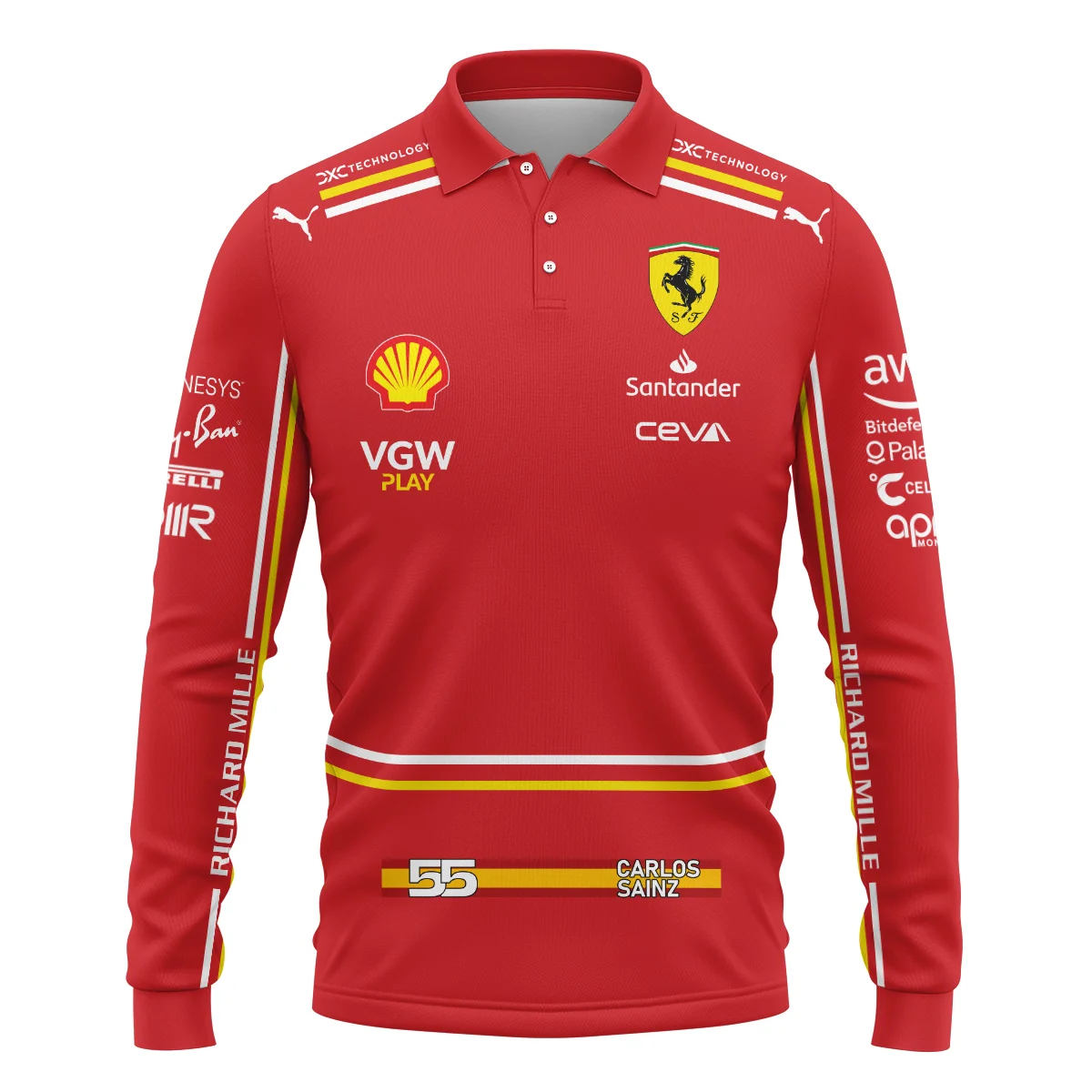 2024 Carlos Sainz Racing Suit Ferrari F1 Long Polo Shirt BLVACS190825A8LPL