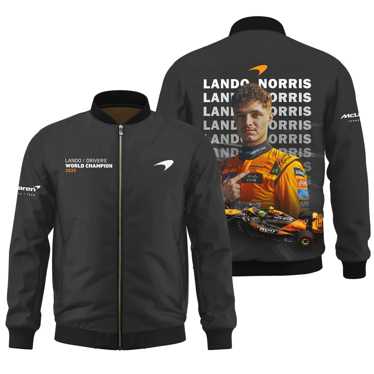 2026 Lando Norris 1 McLaren F1 Teamwear Bomber BLNR25326A1BB – Orange