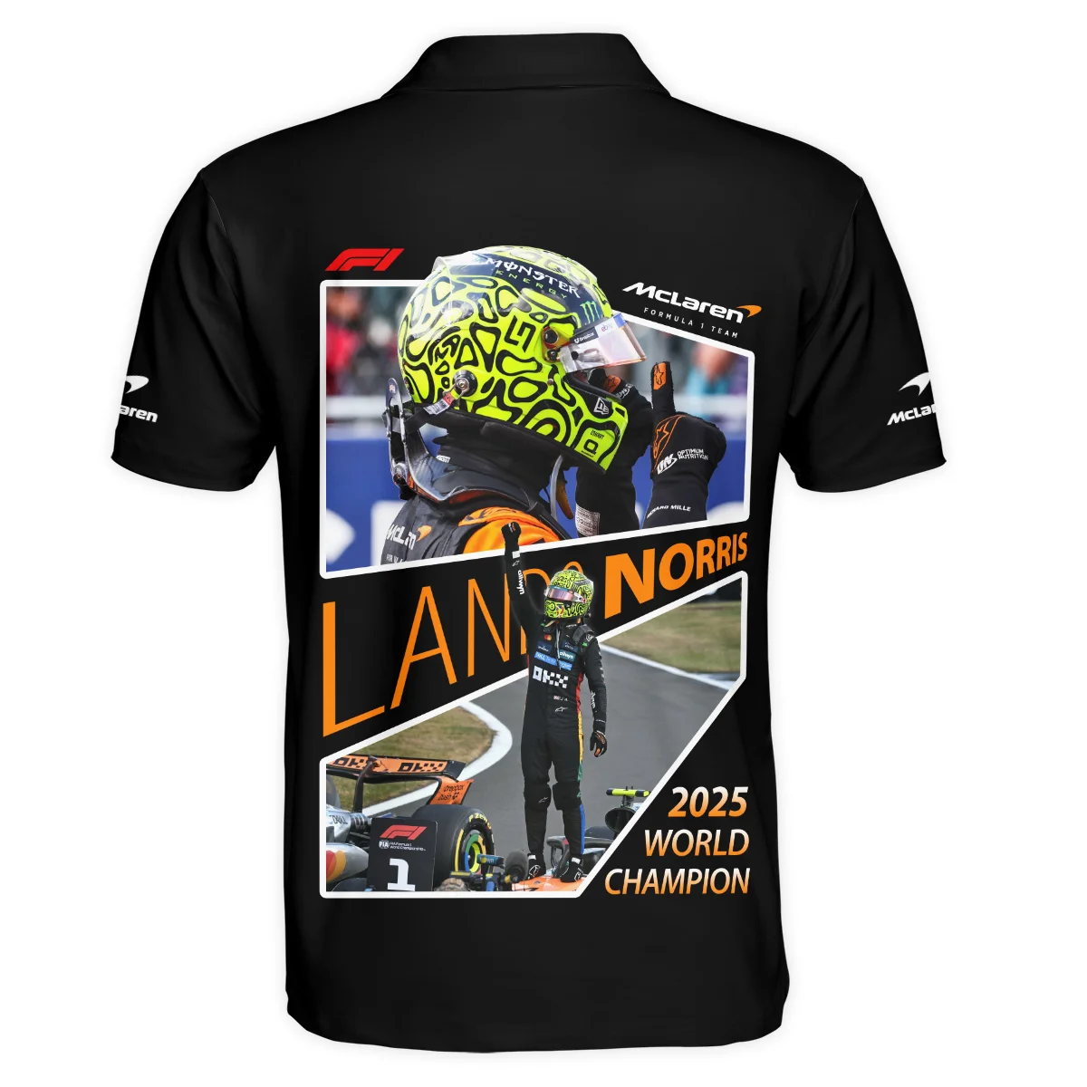 2025 WDC Lando Norris McLaren F1 Team Polo Shirt Unisex Motorsport Apparel BLNRWDCA5PL