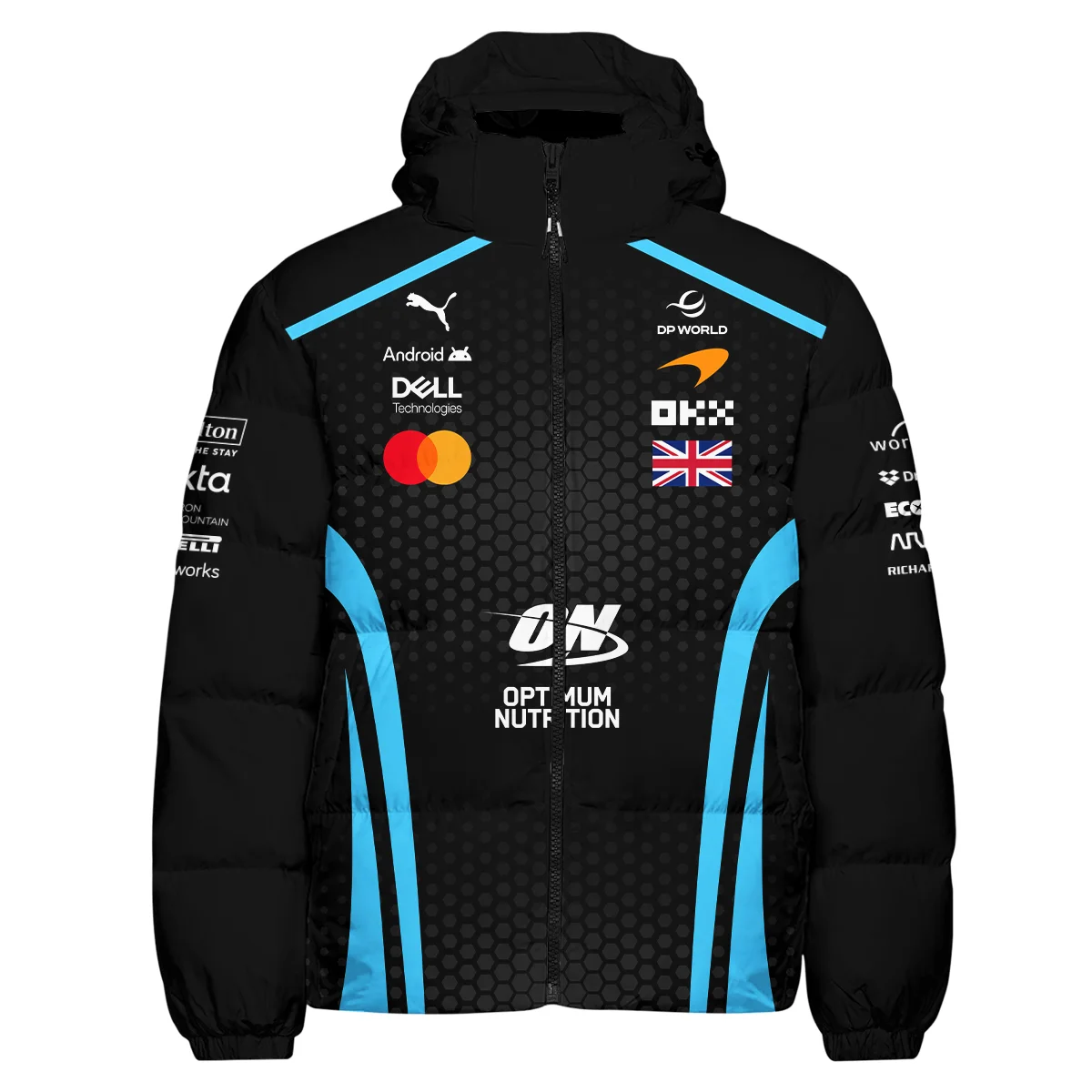 2026 Lando Norris McLaren F1 Teamwear Down & Puffer Jackets Unisex Motorsport Apparel BLNR26226A3HCJ – Cyan