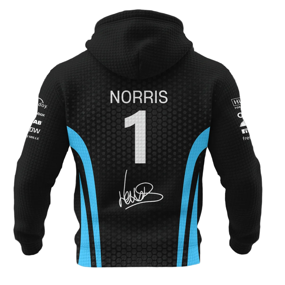 2026 Lando Norris McLaren F1 Teamwear Hoodie Quilted Waffle Unisex Motorsport Apparel BLNR26226A3HQW – Cyan