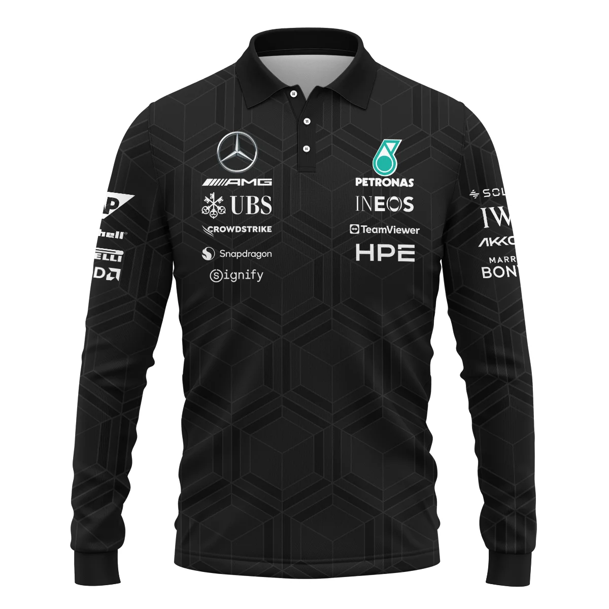 2026 Mercedes F1 Teamwear Long Polo Shirt Unisex Motorsport Apparel BLVAMER1226A1LPL