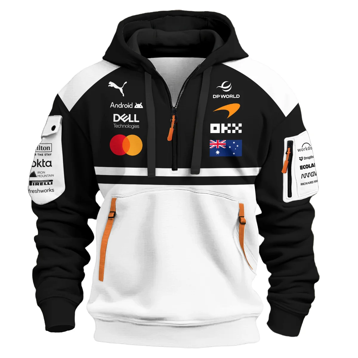 2026 Oscar Piastri McLaren F1 Teamwear Hoodie Half Zip Unisex Motorsport Apparel BLOP4226A2HDF – White