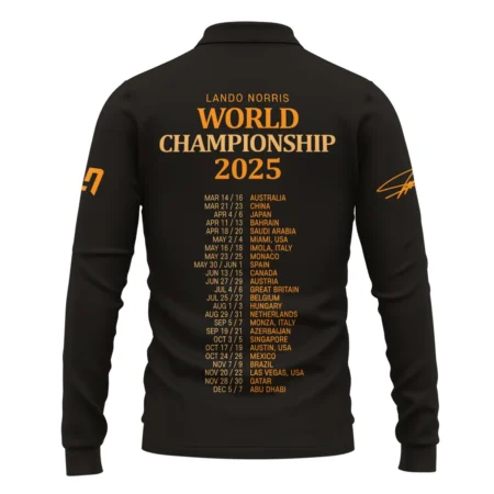 World Championship 2025 Lando Norris McLaren F1 Team Long Polo Shirt BLNRWDCA7LPL
