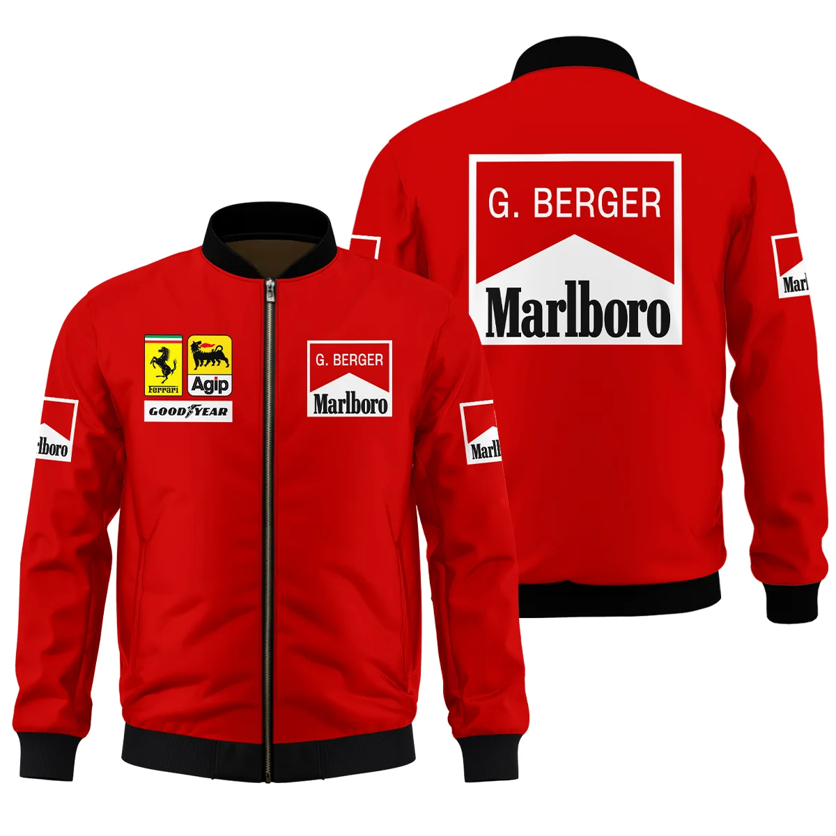 - Elastic ribbed cuff, collar, and bottom band.