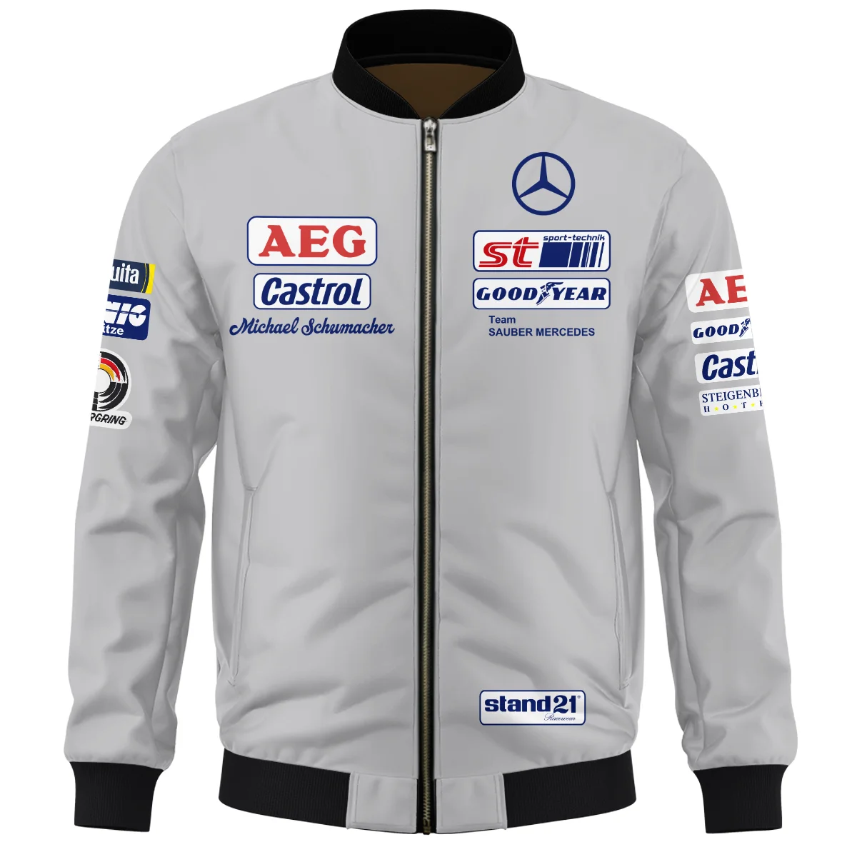 1990 Michael Schumacher Race Suit Mercedes F1 Bomber BLVAMC020925A5BB - Race Day Design