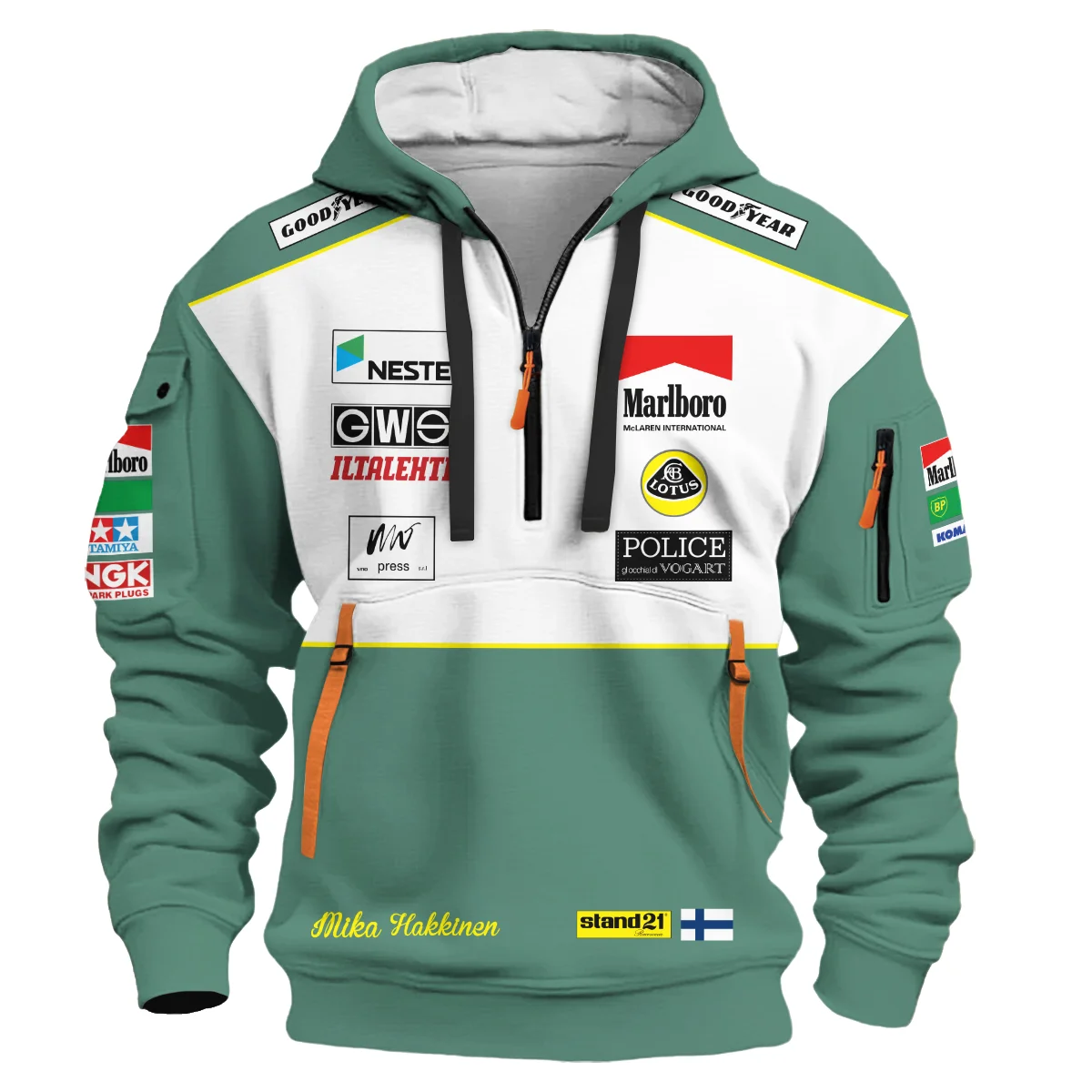 1991 Mika Hakkinen Racing Suit Lotus F1 Hoodie Half Zip BLVAMH271025A2HDF – Race Day Outfit