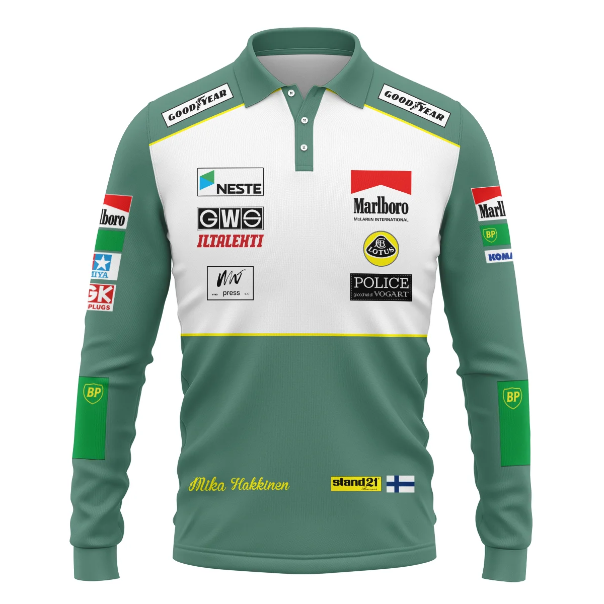1991 Mika Hakkinen Racing Suit Lotus F1 Long Polo Shirt BLVAMH271025A2LPL – Formula Racing Apparel