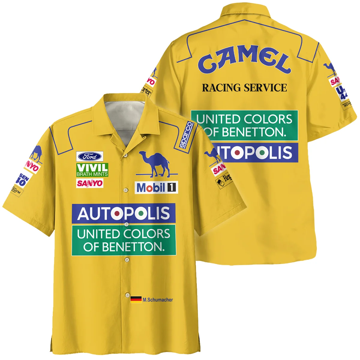 1995 WDC Michael Schumacher Race Suit Benetton F1 Hawaiian Shirt BLVAMC020925A1HW
