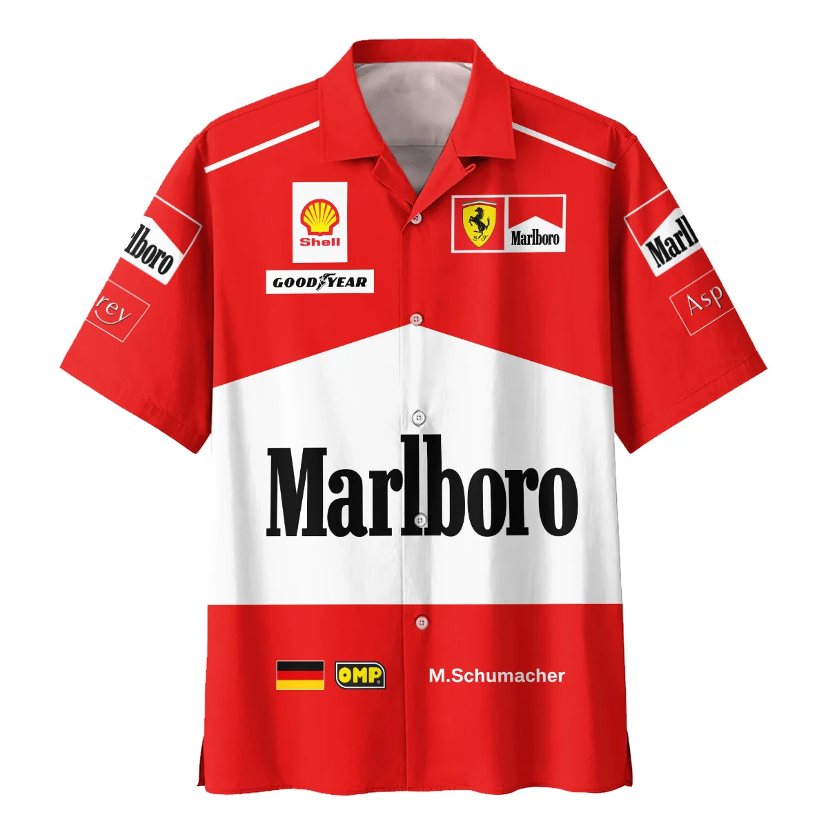 1997 Michael Schumacher Race Suit Ferrari F1 Hawaiian Shirt BLVAMC020925A7HW – Race Day Outfit