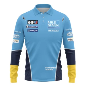 2006 Fernando Alonso Racing Suit Renault F1 Long Polo Shirt Unisex Motorsport Apparel BLVAFA030925A4LPL