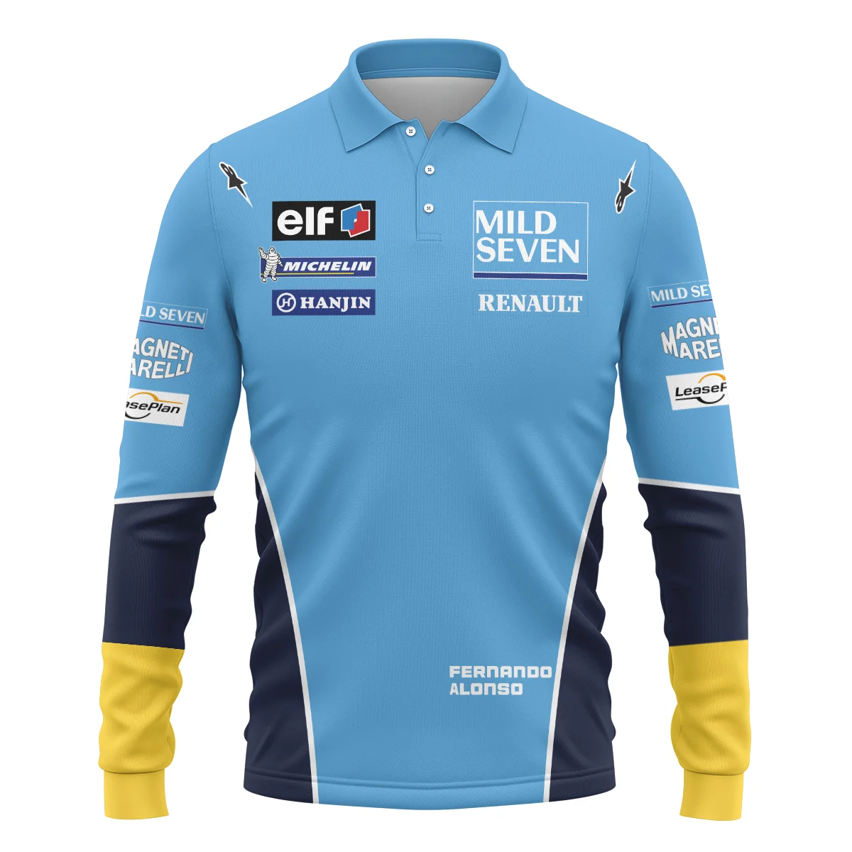 2003 Fernando Alonso Racing Suit Renault F1 Long Polo Shirt BLVAFA030925A7LPL – Race Day Outfit
