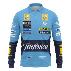 2006 Fernando Alonso Racing Suit Renault F1 Long Polo Shirt Unisex Motorsport Apparel BLVAFA030925A4LPL