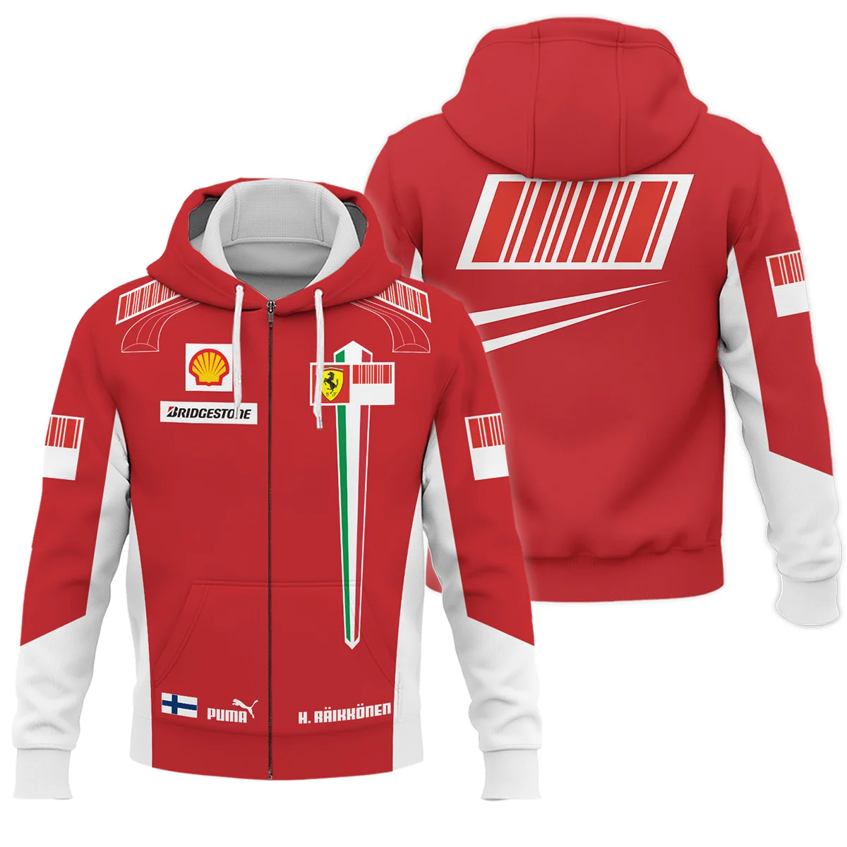 2007 WDC Kimi Raikkonen Racing Suit Ferrari Zipper Hoodie BLVAKR191125A10ZHD – Race Day Outfit