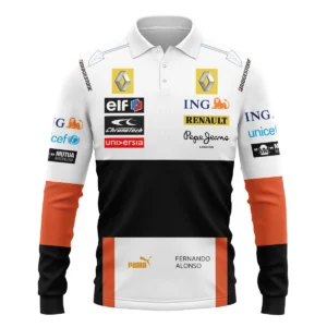 2006 Fernando Alonso Racing Suit Renault F1 Long Polo Shirt Unisex Motorsport Apparel BLVAFA030925A4LPL