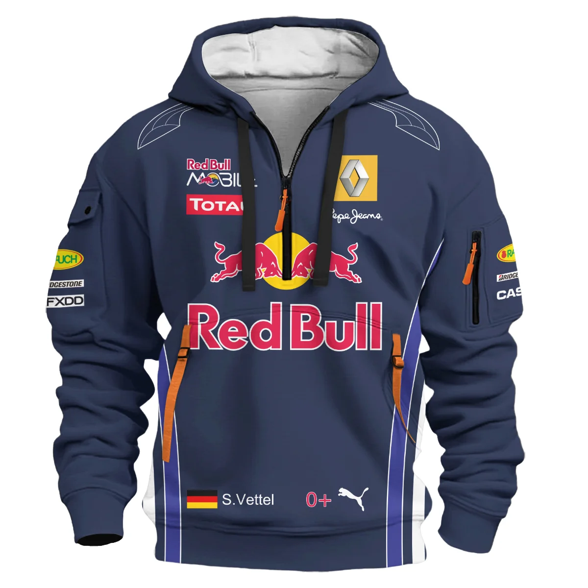 2010 Sebastian Vettel Racing Suit Red Bull Racing F1 Hoodie Half Zip BLVASV110925A7HDF - Pit Lane Clothing 2010 Sebastian Vettel Racing Suit Red Bull Racing F1 Hoodie Half Zip BLVASV110925A7HDF - Pit Lane Clothing