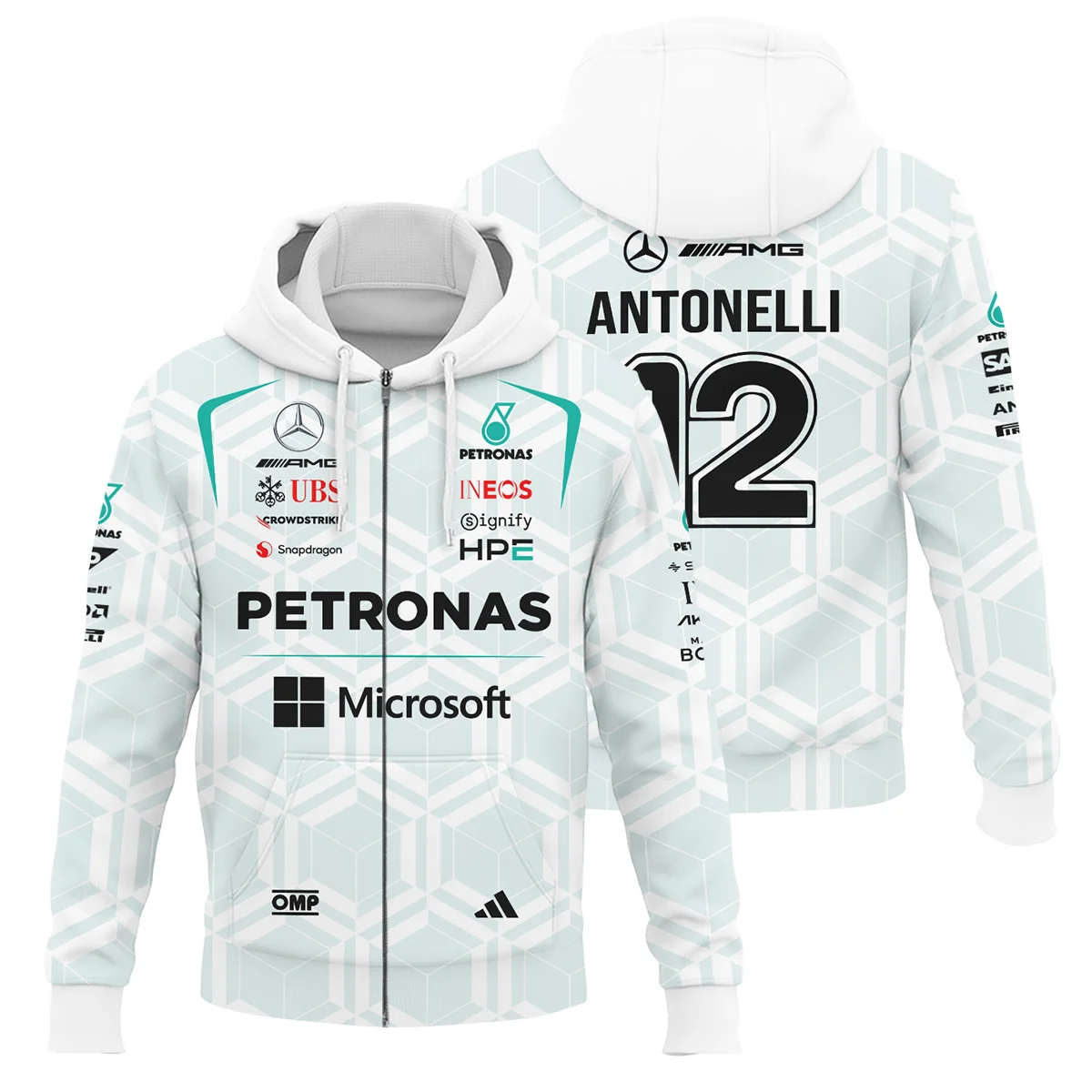 2026 Kimi Antonelli Mercedes F1 Teamwear Zipper Hoodie BLKA29326A2ZHD – White – Racing Lifestyle Clothing