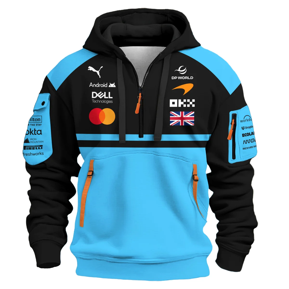 2026 Lando Norris McLaren F1 Teamwear Hoodie Half Zip BLNR26126A3HDF – Cyan – Race Day Outfit
