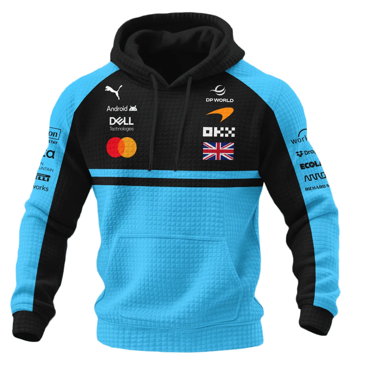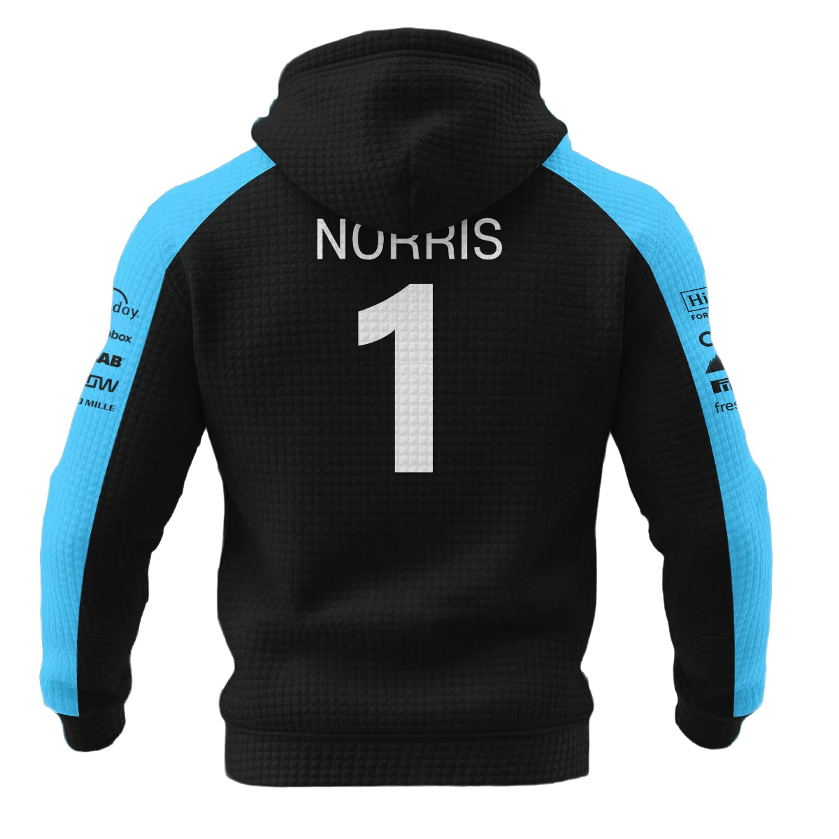 2026 Lando Norris McLaren F1 Teamwear Hoodie Quilted Waffle BLNR26126A3HQW – Cyan – Racing Lifestyle Clothing