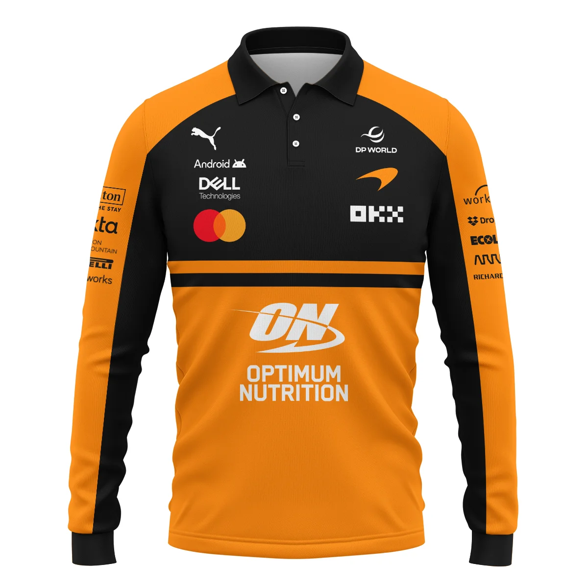 2026 McLaren F1 Teamwear For Fans Long Polo Shirt BLMCL25126A1LPL – Orange – Pit Lane Clothing