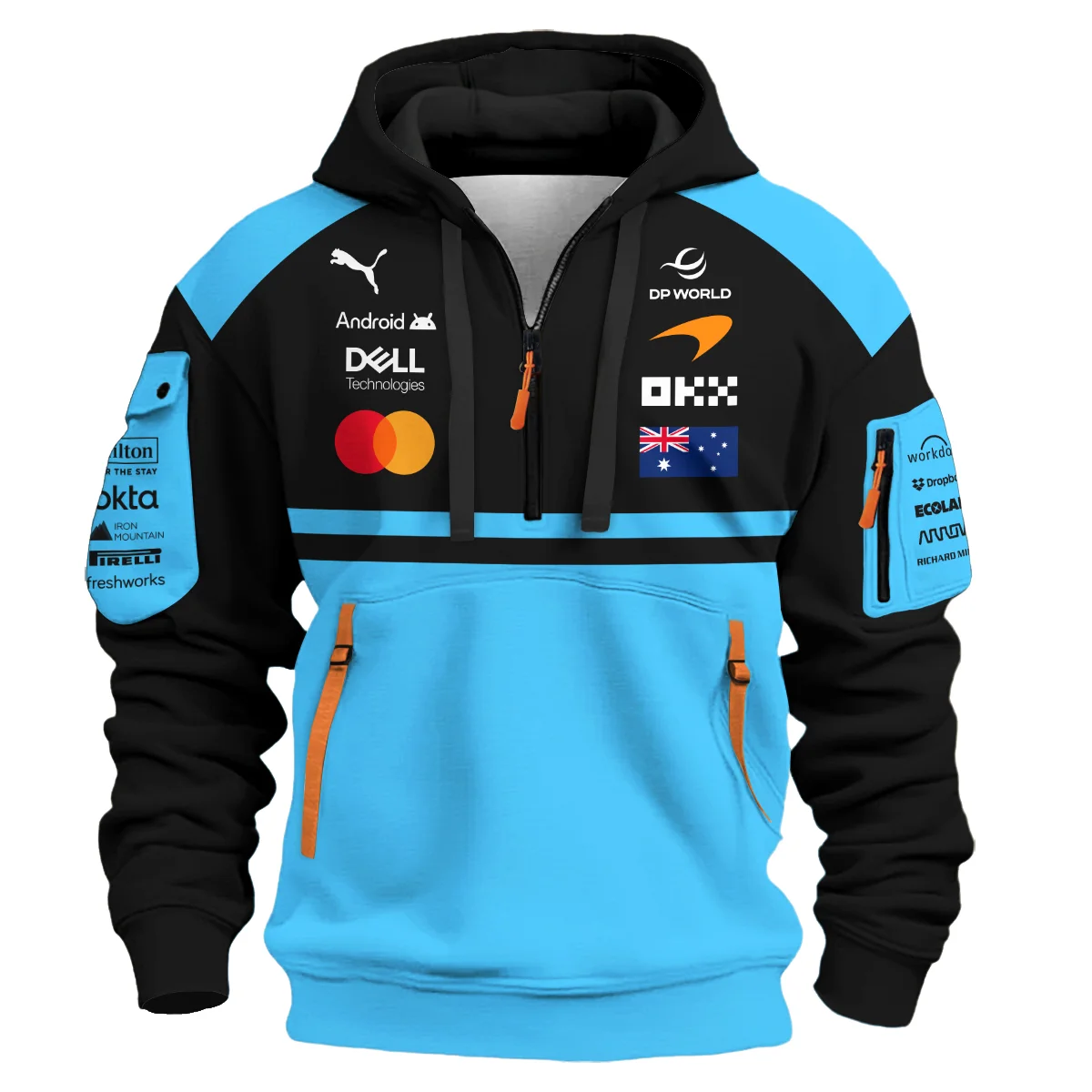 2026 Oscar Piastri McLaren F1 Teamwear Hoodie Half Zip BLOP4226A3HDF – Cyan – Racing Lifestyle Clothing