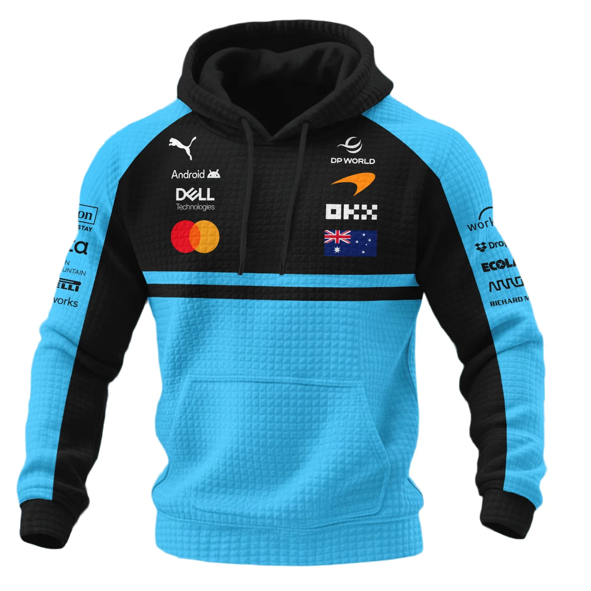 2026 Oscar Piastri McLaren F1 Teamwear Hoodie Quilted Waffle BLOP4226A3HQW – Cyan – Motorsport Lifestyle Wear