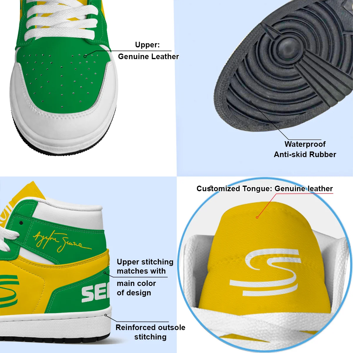 Senna 12 Custom Shoes Logo Air Jordan 1 High BLSN19725A7 – Style 7