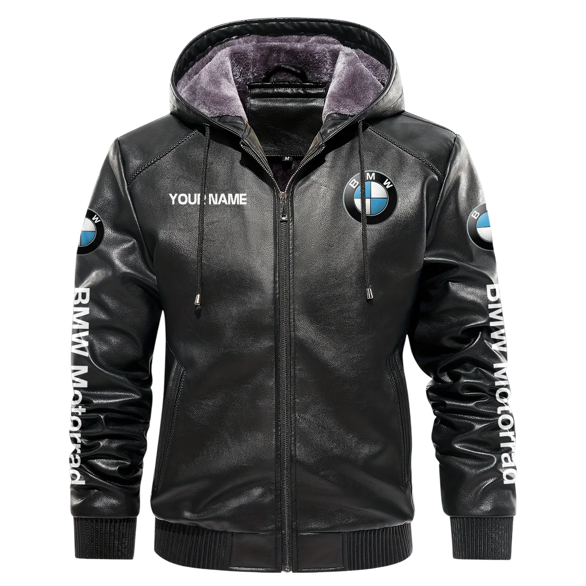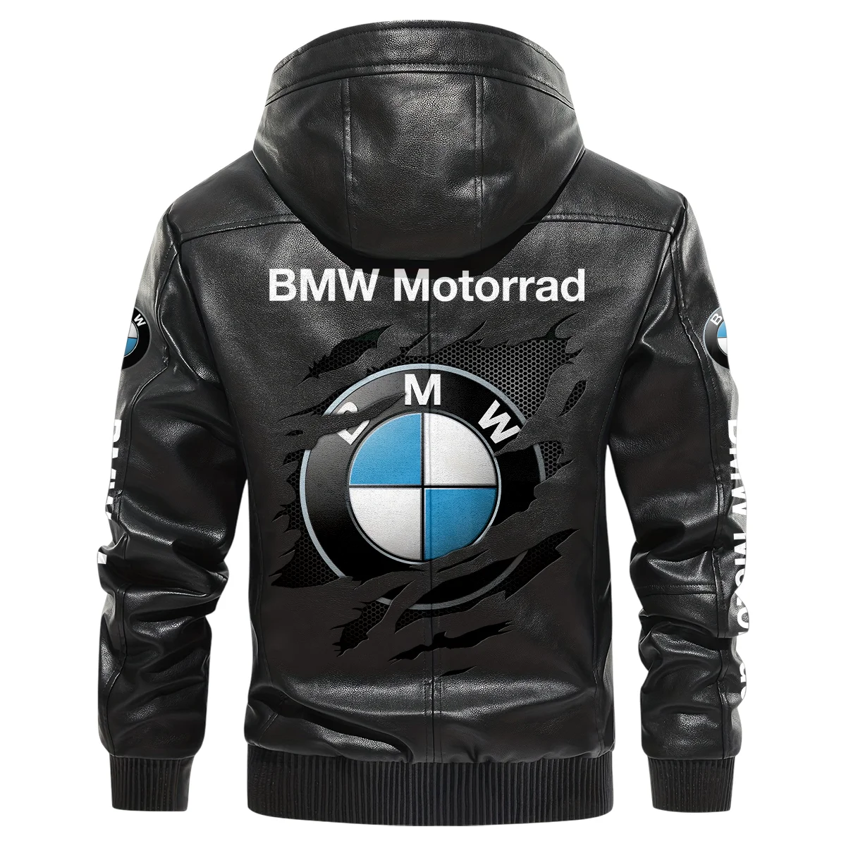 BMW Motorrad Inspired Fan Logo Hooded Leather Jacket QTMO230625A2BMW