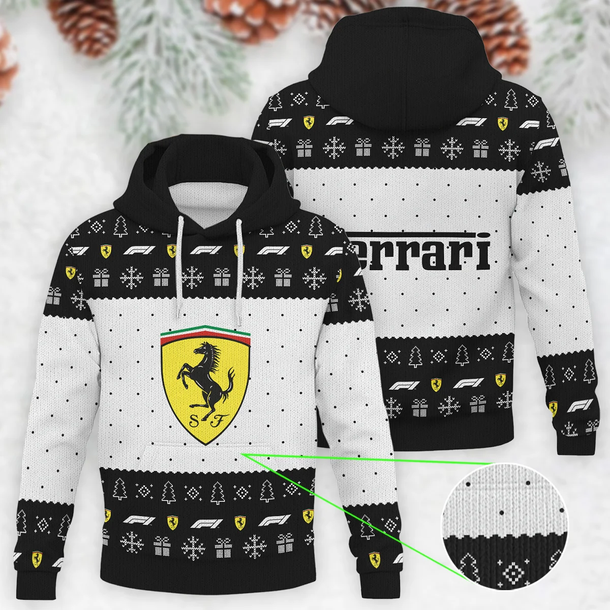 Christmas Pattern Ferrari Formula 1 – Knitted Hoodie BLVAF12209250A9FRR